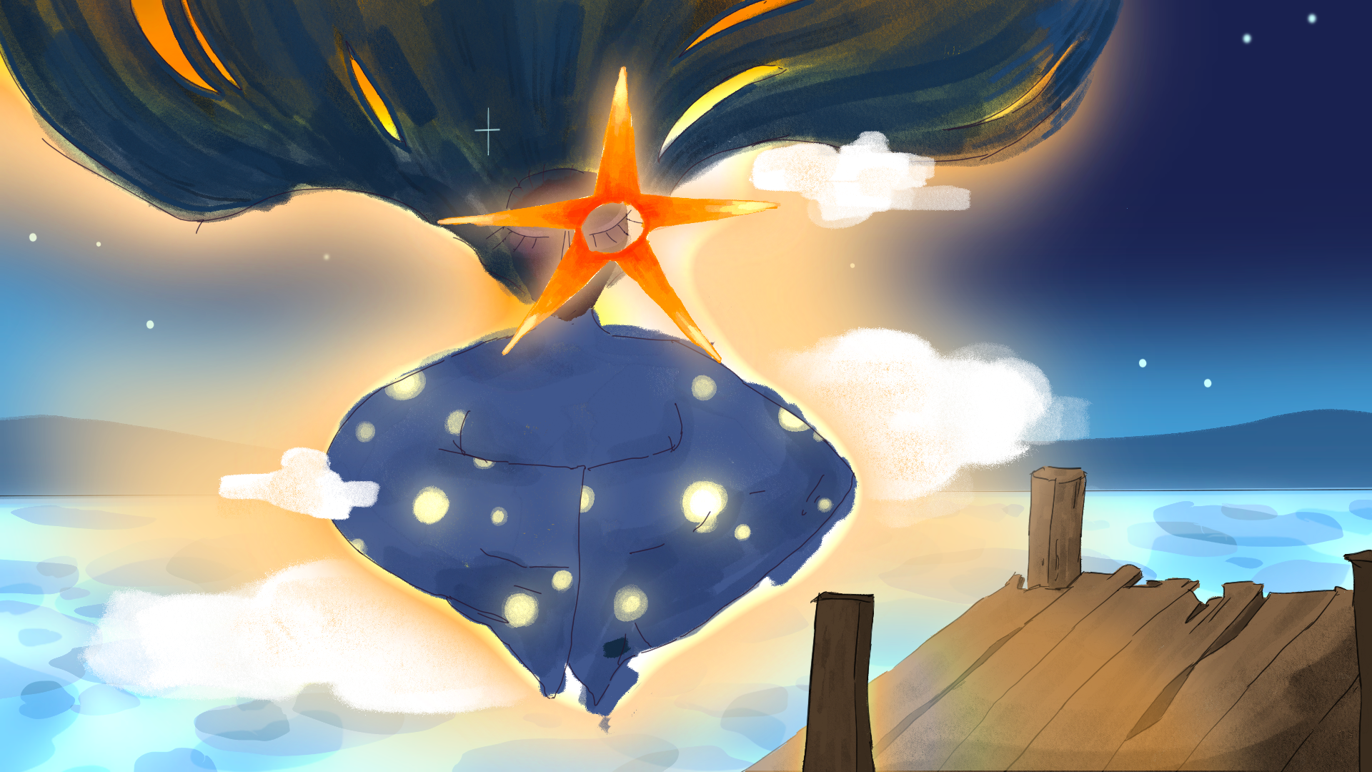 "Ghost of Moon" is a project in its conceptual stage. It is the story following a mysterious newcomer in small seaside town.